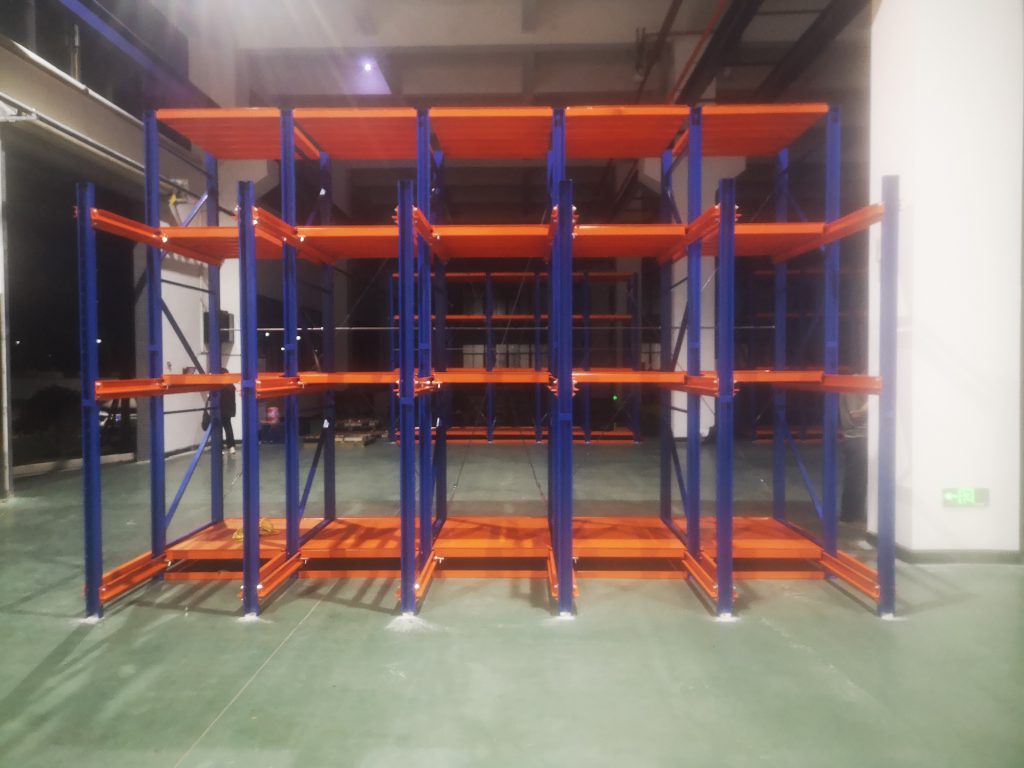 特殊定制規(guī)格,每一塊抽屜板長1300mm,深度900mm,抽出800mm;貨架總高度3500mm;貨架立柱使用博儲多道輥壓成型模具架立柱,層板加強使用大型號40*60型鋼;滑槽軌道下方三角加強,保證底部載重3000KG,中上層2000KG;